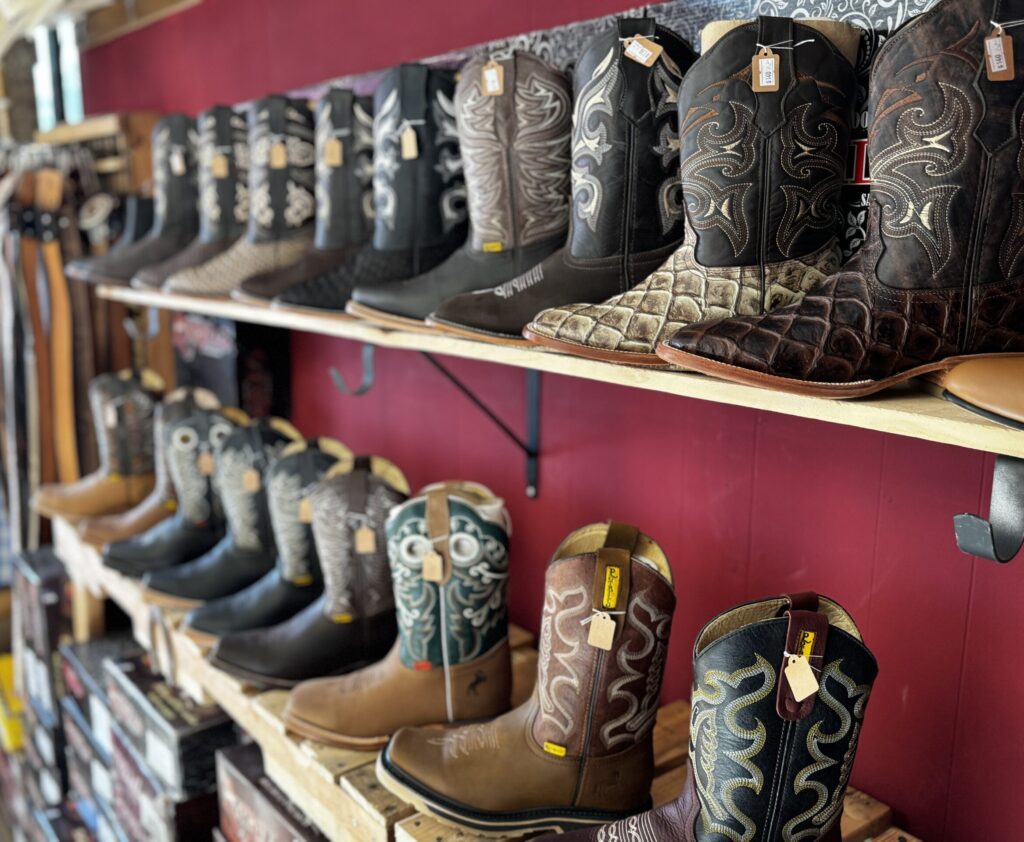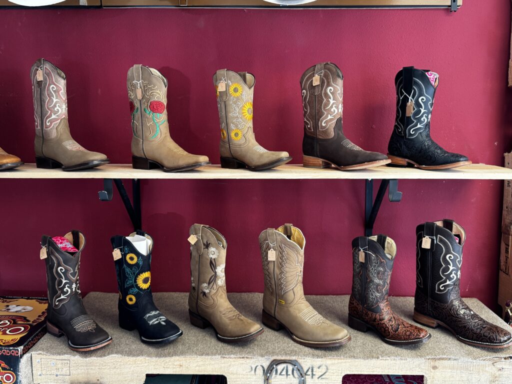 We don’t have a massive inventory — just a solid, carefully chosen selection of boots, work boots, and horse tack. What we do carry is quality. Our boots are imported straight from León, Guanajuato (known for some of the best craftsmanship in the world).
